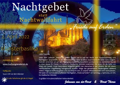 Im Jahr 2022 findet statt der Nachtwallfahrt ein Nachtgebet in der Münsterkirche statt, zu welchem nur eine